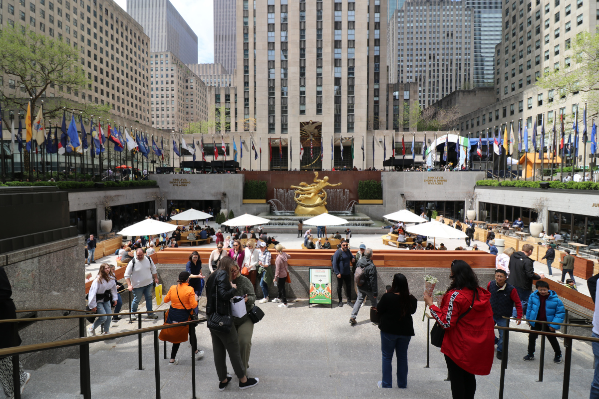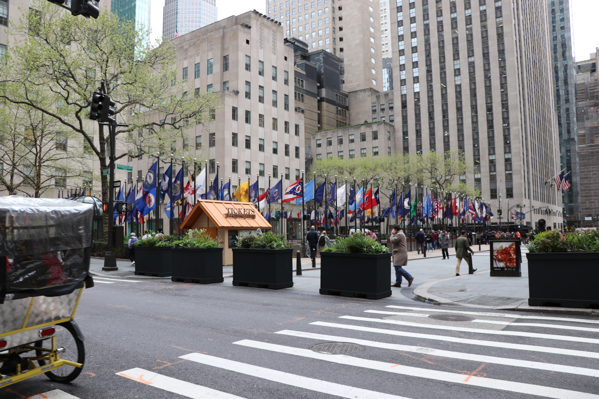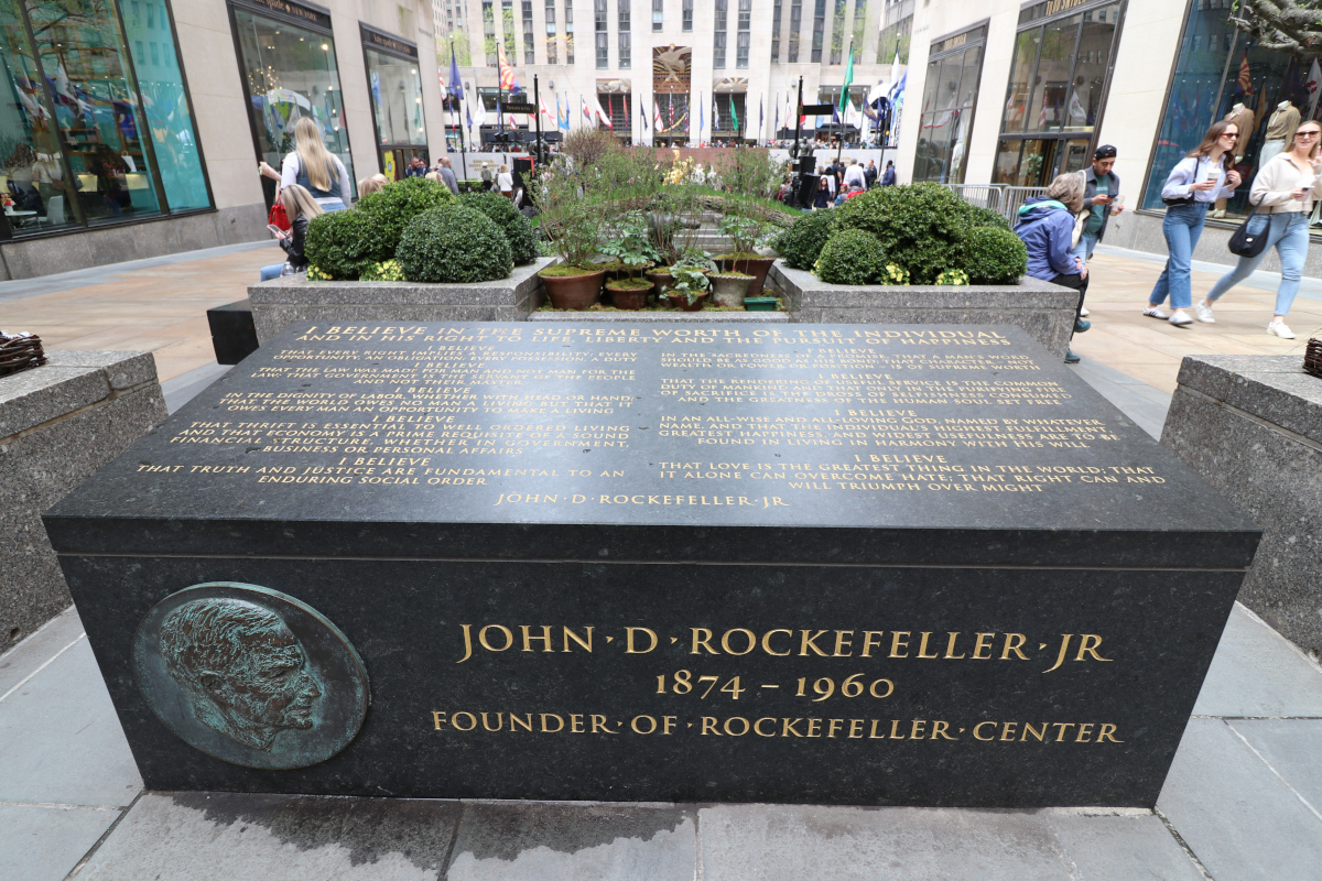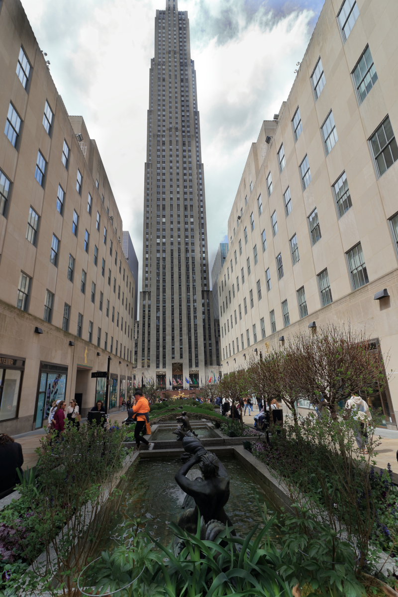 New York Rockefeller Plaza Battery Park è un parco pubblico con una superficie di circa 8,5 ettari, corrispondenti a 85 000 mq, situato all'estremità meridionale dell'isola di Manhattan a New York. Prende il suo nome dalla batteria di cannoni che difendeva il porto della città, al tempo in cui era colonia olandese e britannica. Alla sua estremità settentrionale si trova un memoriale delle vittime dell'AIDS, mentre al suo interno è conservato ancora un forte del XIX secolo, il Castle Clinton, attualmente museo nazionale. All'altra estremità del parco si trova il ristorante Battery Gardens, accanto all' United States Coast Guard Battery Building. Lungo la riva, la compagnia Statue Cruises offre traghetti per visitare la Statua della Libertà ed Ellis Island. Il parco è anche la sede dell'East Coast Memorial, a commemorazione dei militari americani deceduti nelle acque lungo la costa dell'Oceano Atlantico occidentale durante la Seconda guerra mondiale, e molti altri memoriali.